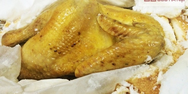 Thực khách khi tới nhà hàng Góc Hà Nội chắc chắn không thể bỏ qua món ăn đặc trưng này của nhà hàng. Chú gà được "giấu kín" trong một lớp "tuyết" dày đặc và rắn chắc. Chỉ khi phá bỏ lớp vỏ bên ngoài, con gà mới lộ nguyên ...